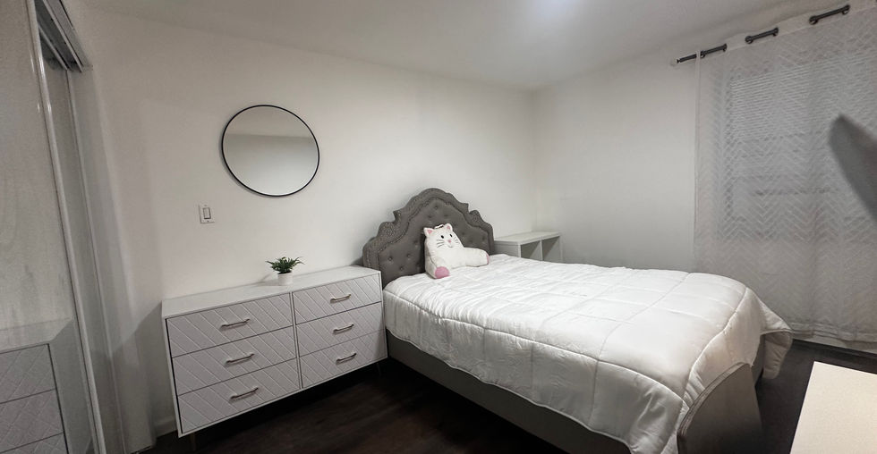2bed 1 bath APT, and the bedroom is fully equipped with modern furniture, and your closet is with sliding mirrored doors..